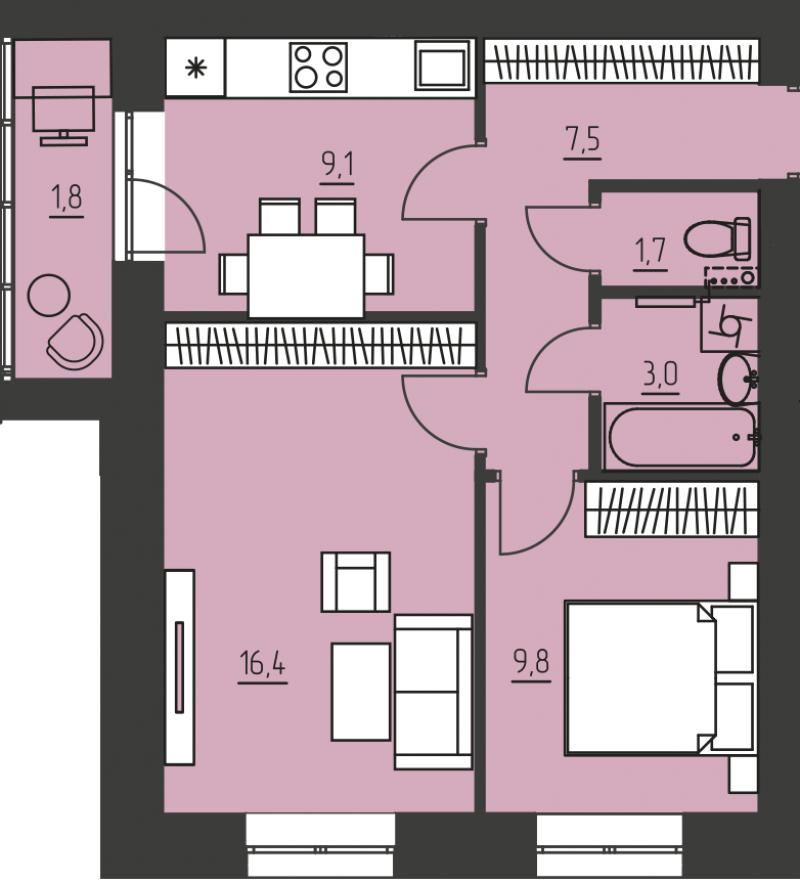 2-комн. квартира, 49.30 м², 10/10 этаж