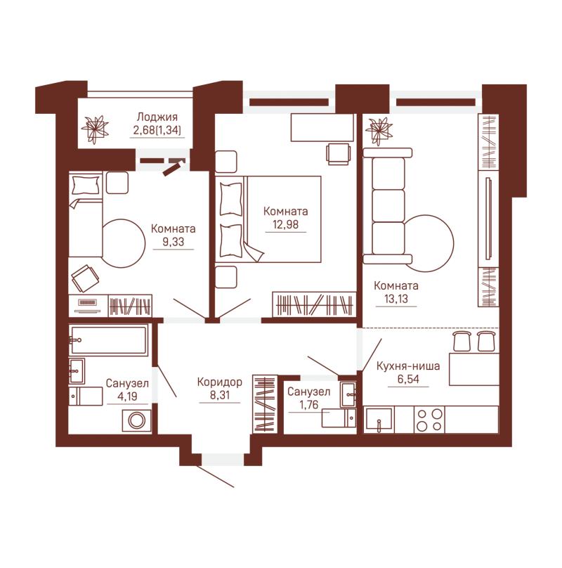 3-комн. квартира, 57.58 м², 21/24 этаж