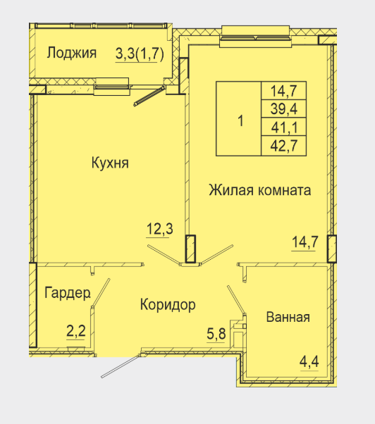1-комн. кв. 41.48 м² 8/16 эт.