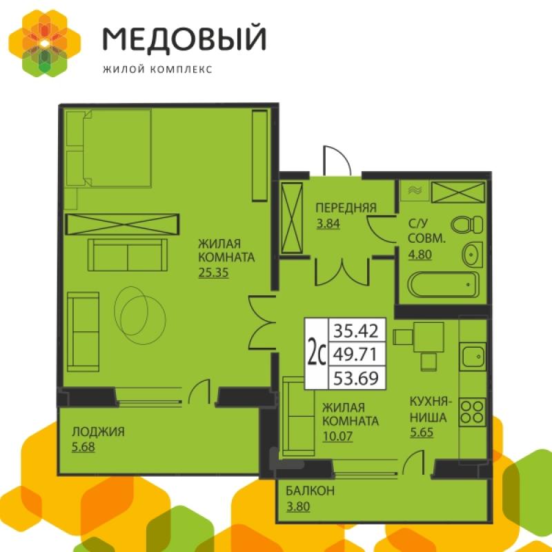 2-комн. кв. 49.38 м² 4/25 эт.