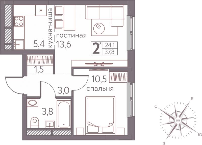 2-комн. квартира, 37.80 м², 8/17 этаж