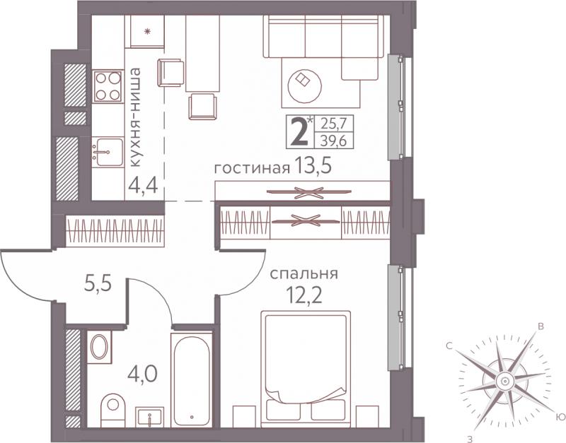 2-комн. квартира, 39.60 м², 9/17 этаж