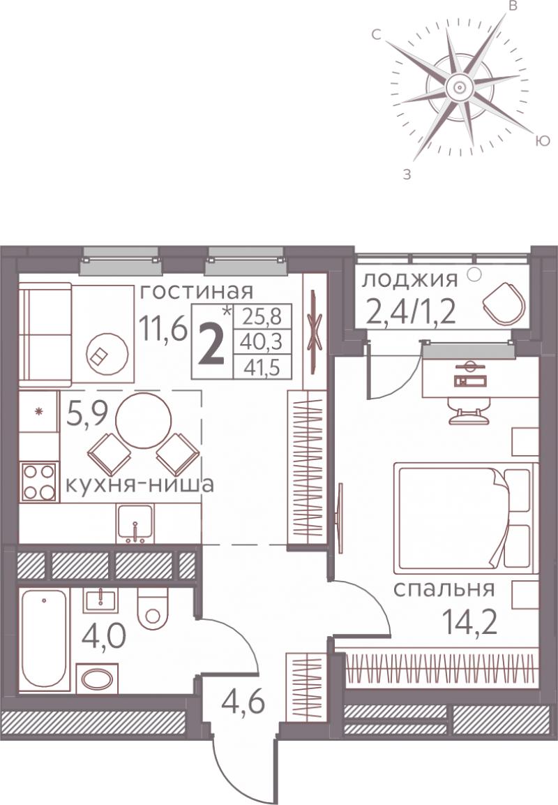 2-комн. квартира, 41.50 м², 8/17 этаж
