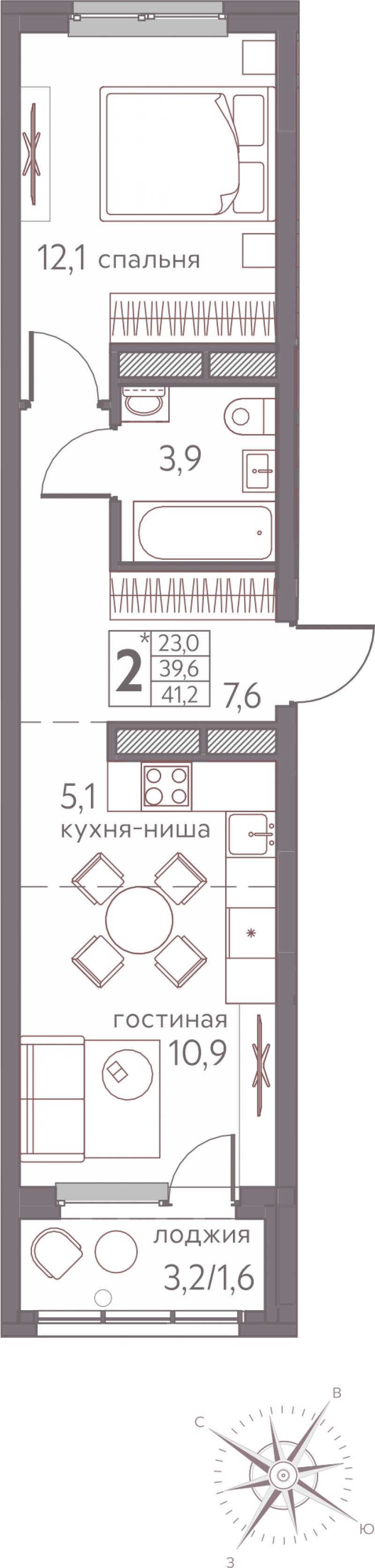 2-комн. квартира, 41.20 м², 11/17 этаж