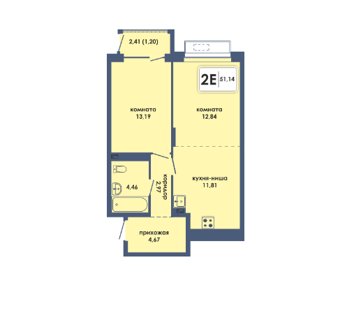 2-комн. евро квартира, 51.14 м², 9/9 этаж