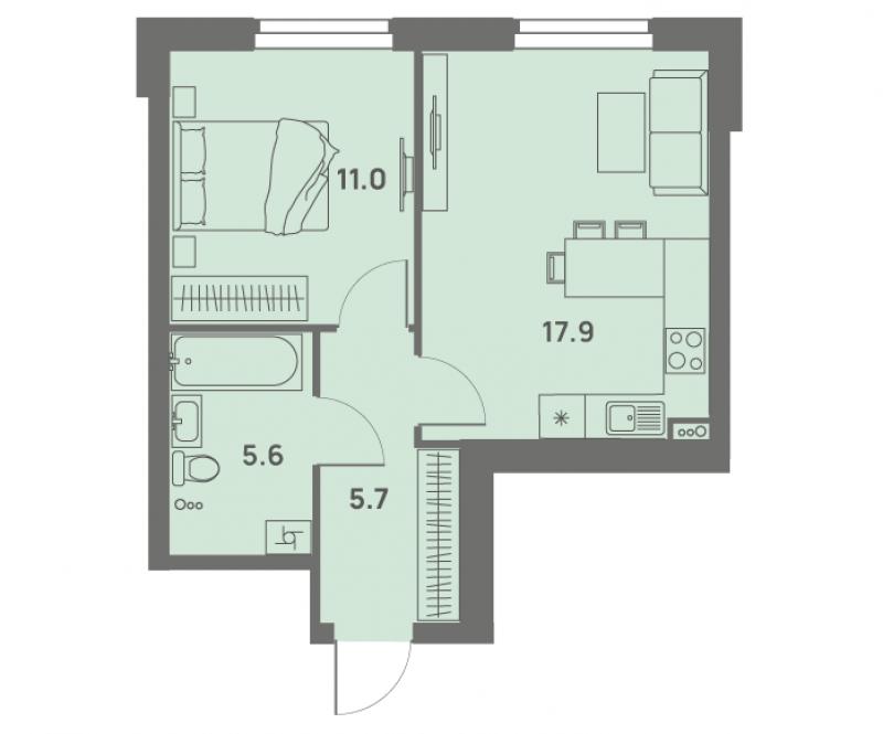 2-комн. квартира, 40.20 м², 12/25 этаж