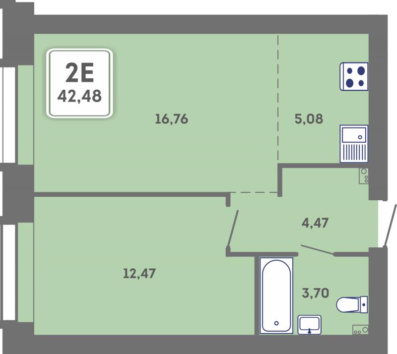 2-комн. квартира, 42.48 м², 1/6 этаж