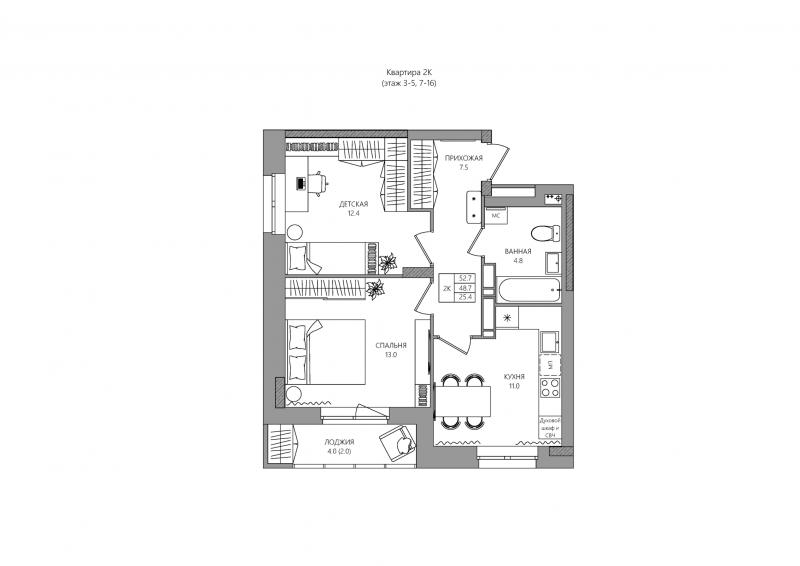 - Высота потолков в квартирах — от 2,72 м до 2,9 м. Увеличенные окна, простор и свет.