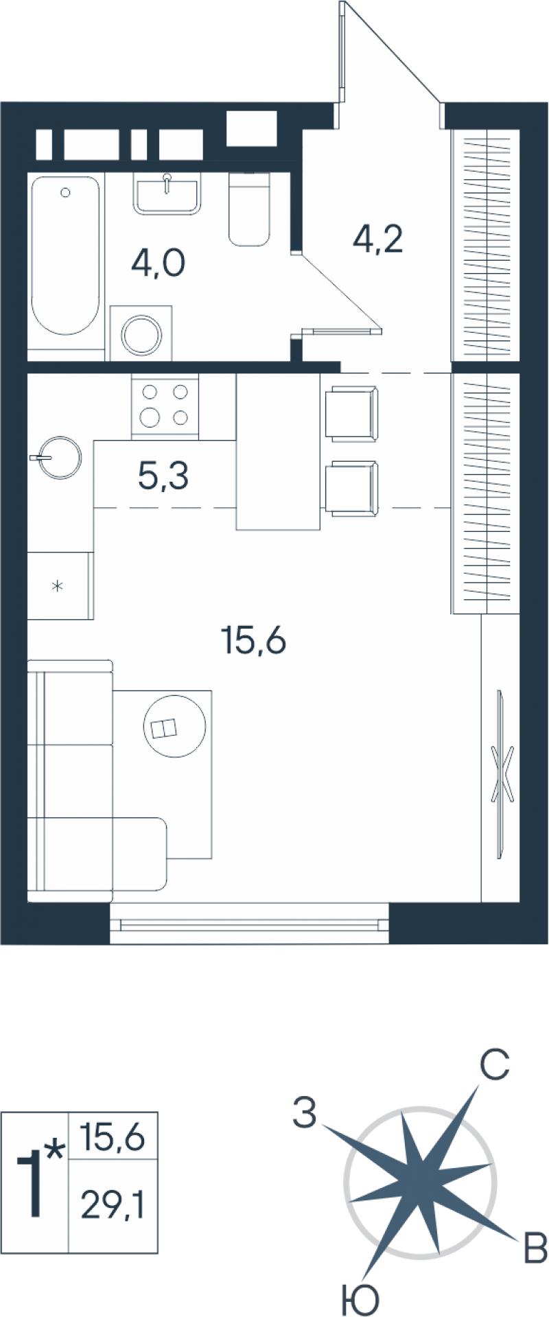 1-комн. квартира, 29.10 м², 9/14 этаж