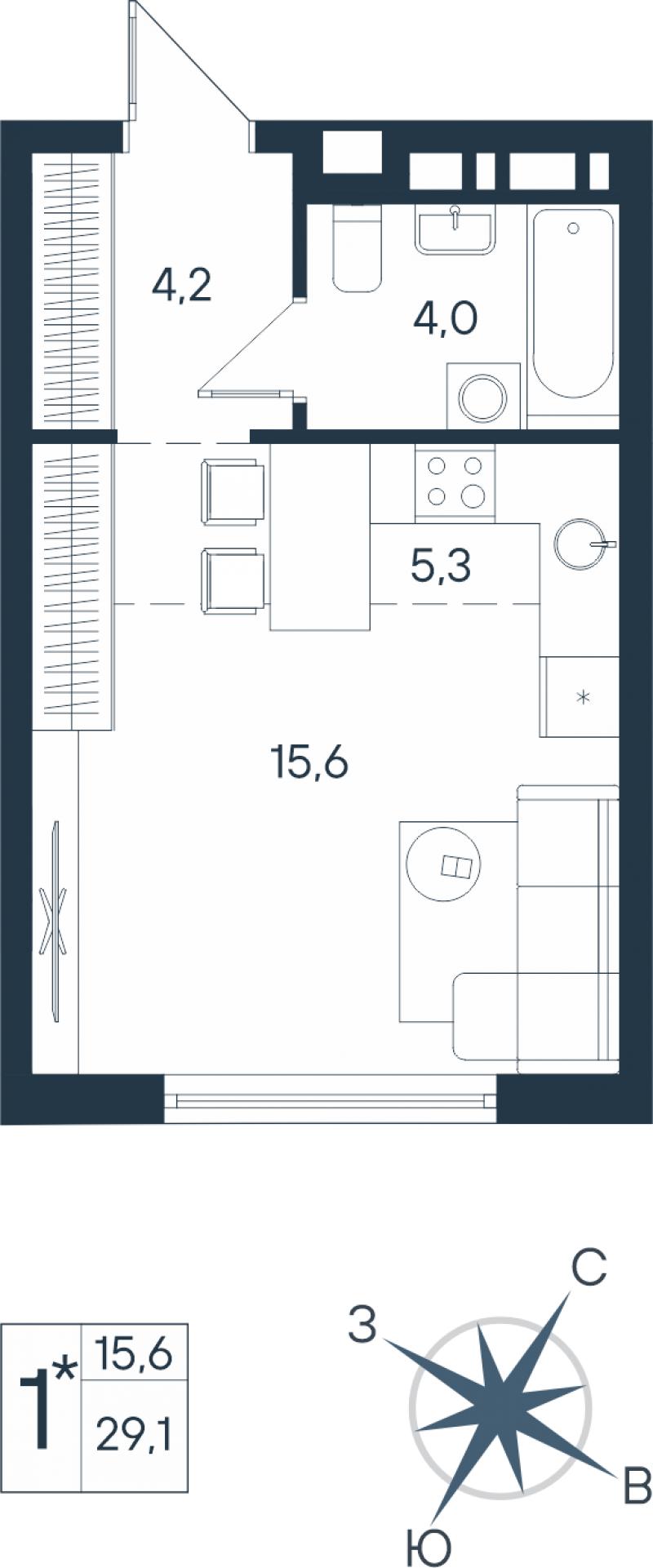 1-комн. квартира, 29.10 м², 9/14 этаж