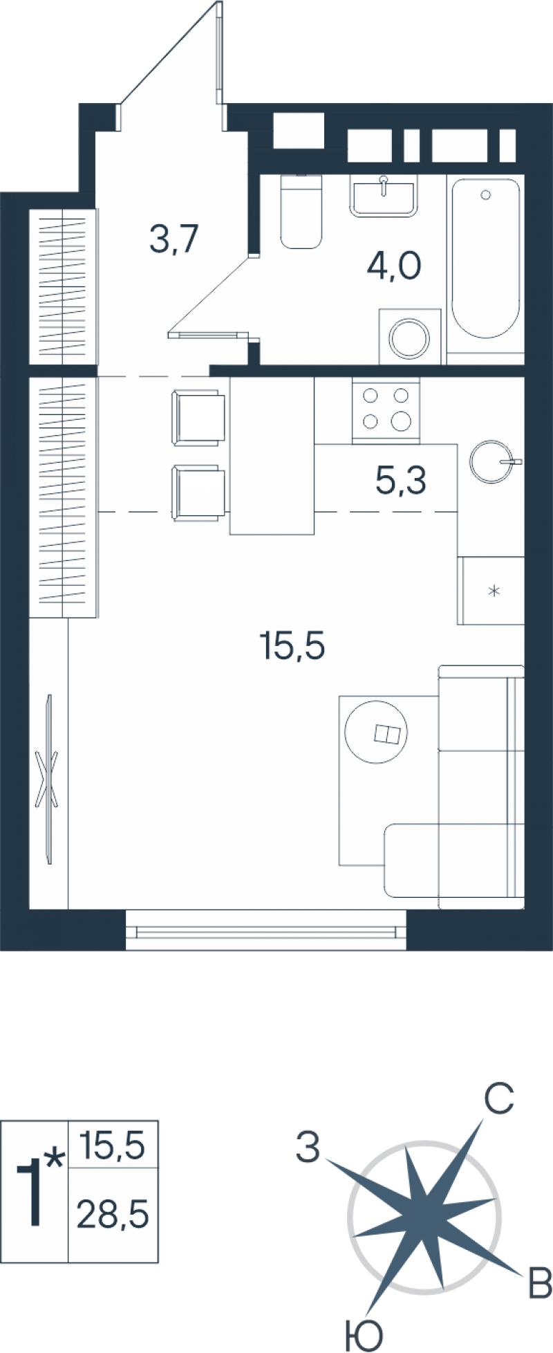1-комн. квартира, 28.50 м², 13/14 этаж