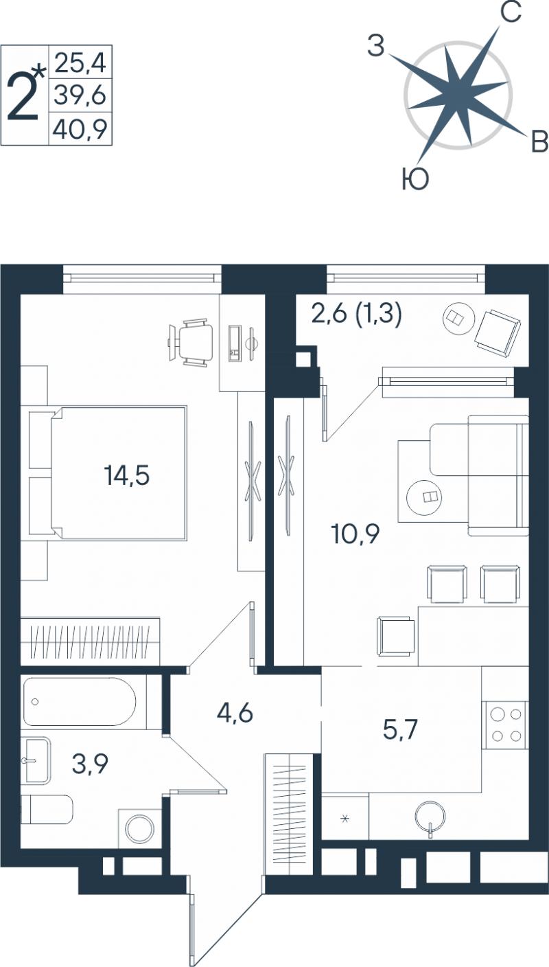 2-комн. кв. 40.70 м² 4/25 эт.