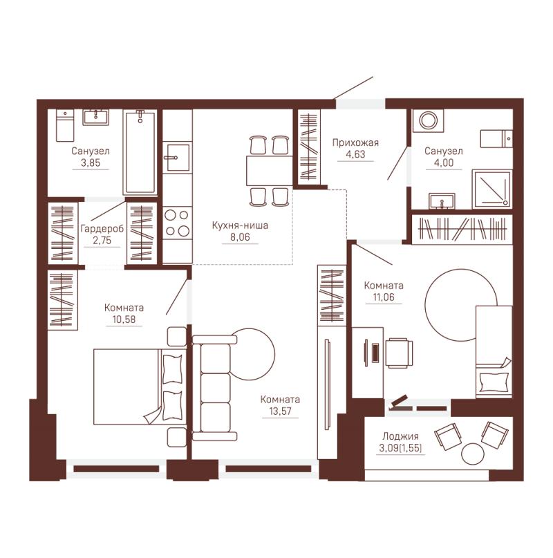 3-комн. квартира, 60.05 м², 10/24 этаж