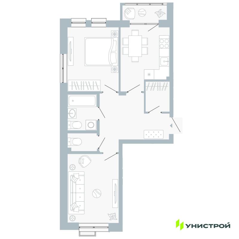 В квартирах выполняется предчистовая отделка с использованием качественных материалов: металлические двери, тепло- и шумоизоляция, энергоэффективные стеклопакеты, скрытая разводка коммуникаций и радиаторы с терморегуляцией. В квартиры будет подаваться питьевая вода.
