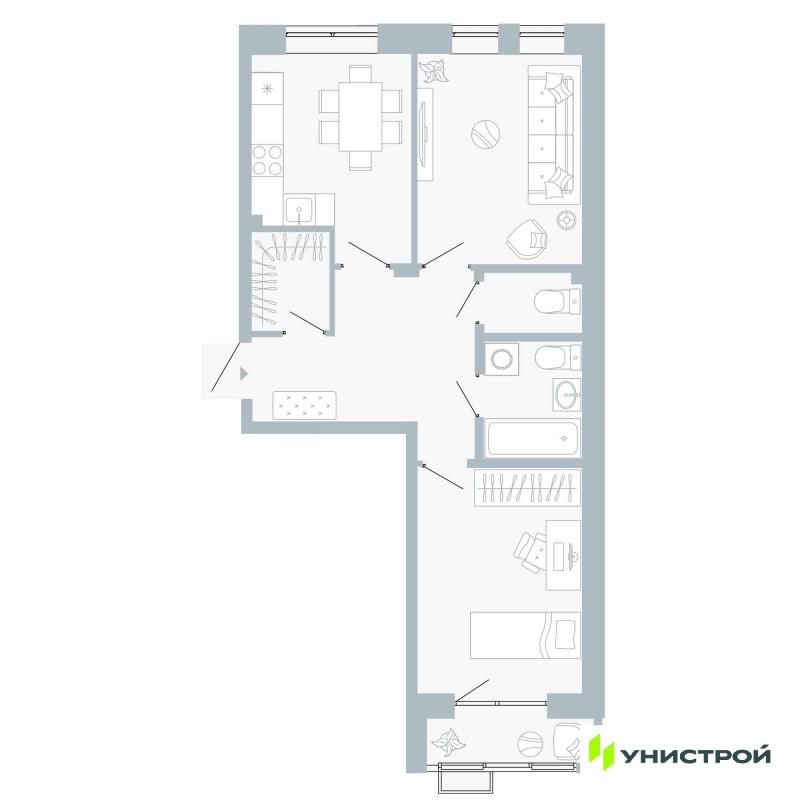 В квартирах выполняется предчистовая отделка с использованием качественных материалов: металлические двери, тепло- и шумоизоляция, энергоэффективные стеклопакеты, скрытая разводка коммуникаций и радиаторы с терморегуляцией. В квартиры будет подаваться питьевая вода.