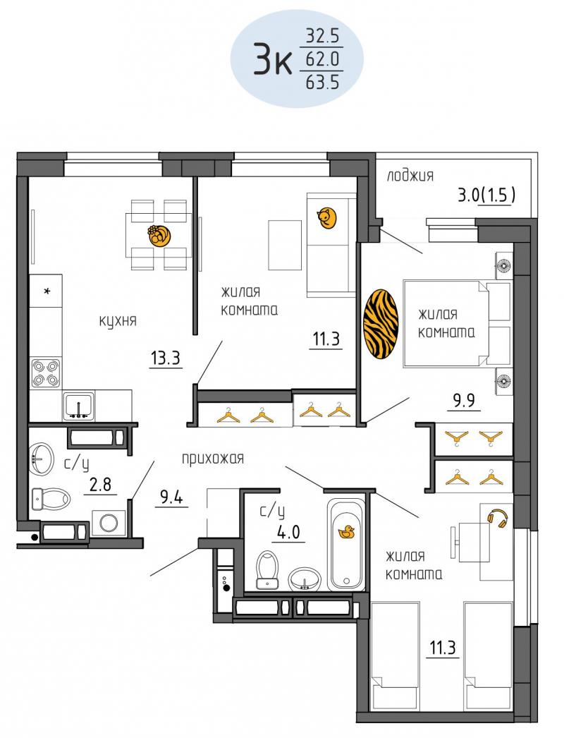 Продается 3- комнатная квартира N 606 в ЖК Утро.