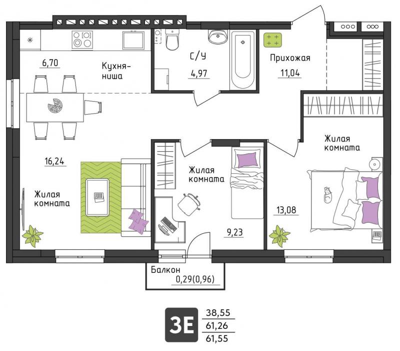 Продается квартира 3-комнатная N 67. Жилой комплекс Настроение – это три комфортных 4-этажных дома с эргономичными планировками и современными инженерными решениями. Настоящая находка для практичных людей! Покупая квартиру в ЖК Настроение, вы платите только за своё жильё без переплаты за близость к центру.