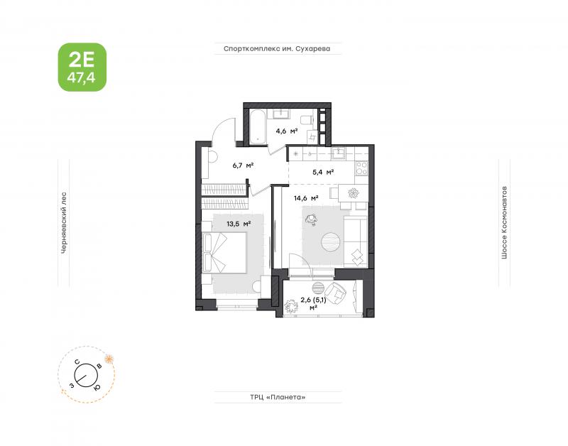 2-комн. кв. 41.20 м² 12/17 эт.