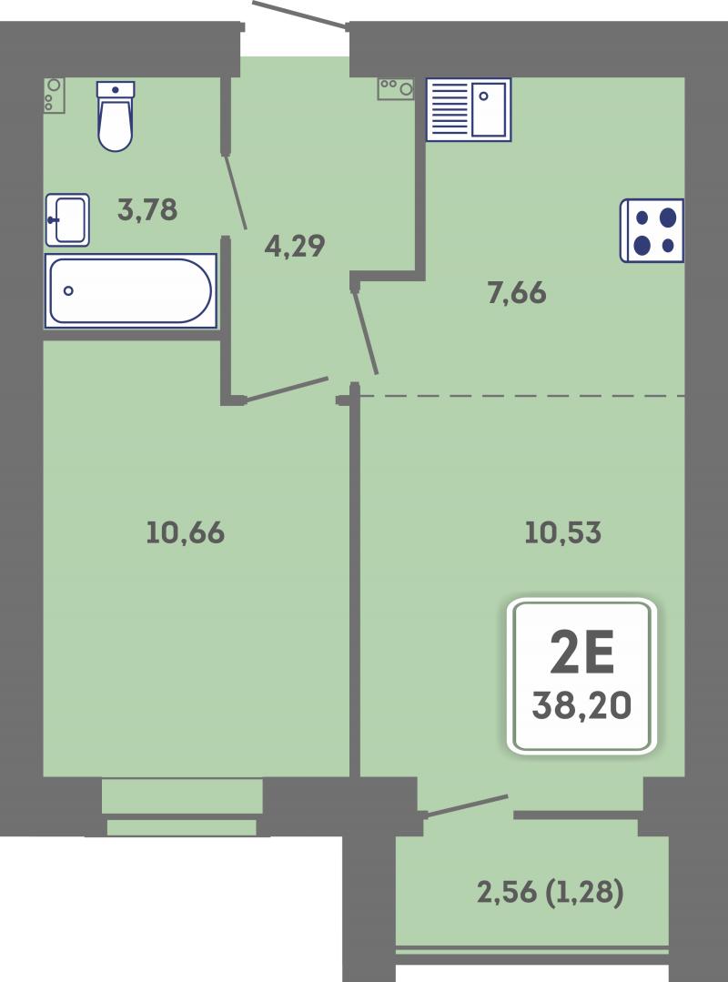 2-комн. квартира, 38.20 м², 2/6 этаж