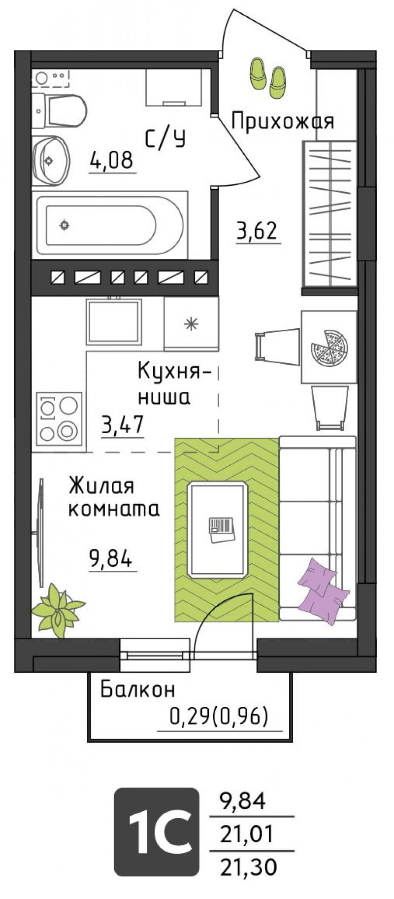 1-комн. квартира, 21.30 м², 3/4 этаж