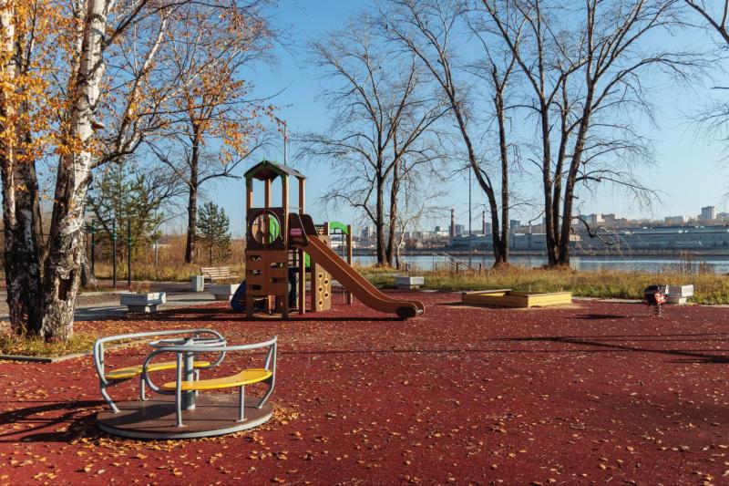 Дворовая территорияЖК Курья-Паркрасположенапрямо на берегу Камы - современная детская площадка, качели для малышей и волейбольная площадка!