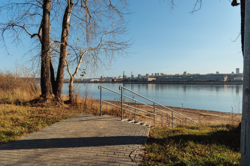 Дворовая территория ЖК Курья-Паркрасположена прямо на берегу Камы - современная детская площадка, качели для малышей и волейбольная площадка!