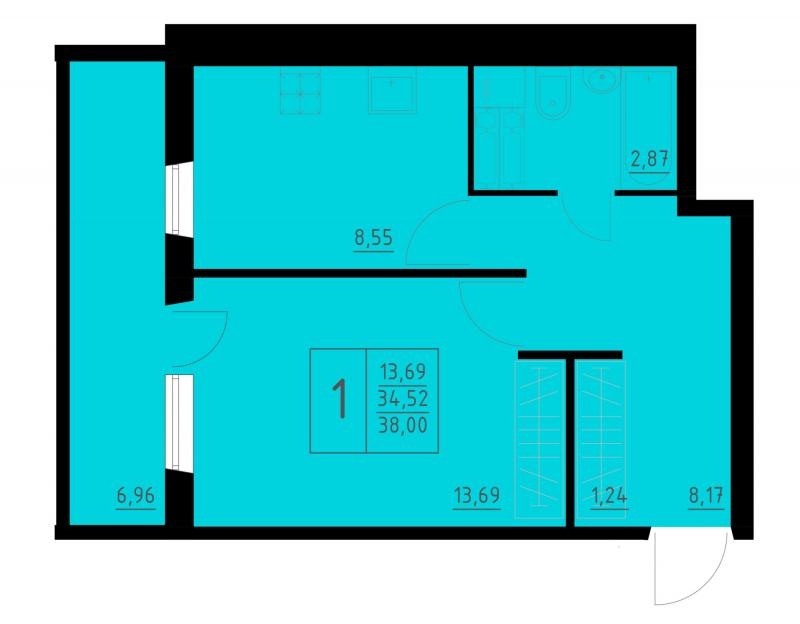 1-комн. квартира, 38.00 м², 7/10 этаж