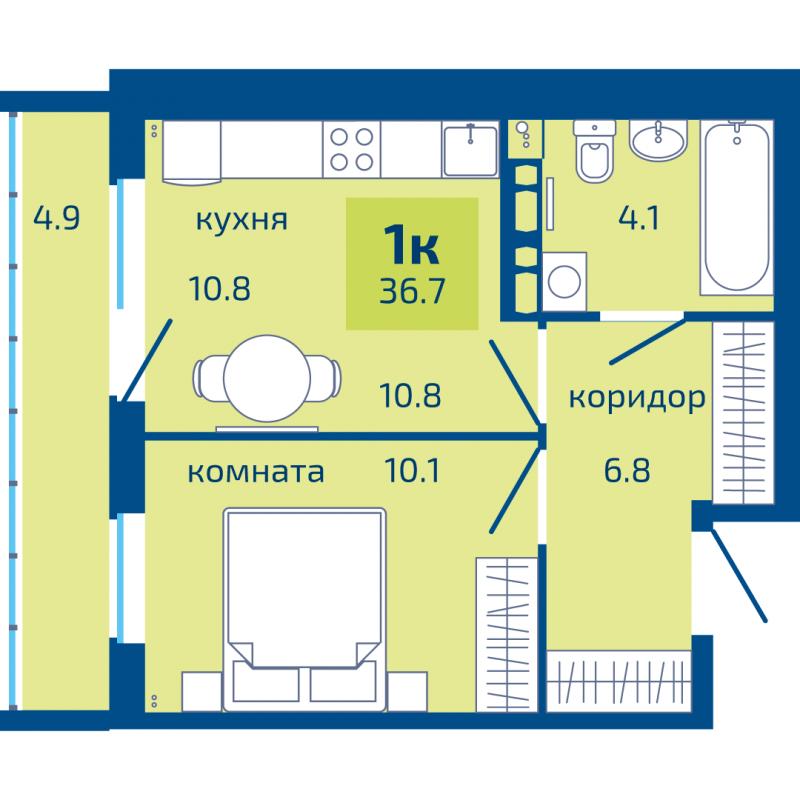 1-комн. квартира, 36.70 м², 8/11 этаж