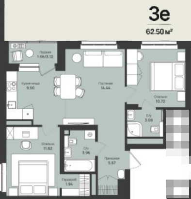 3-комн. кв. 62.69 м² 6/10 эт.