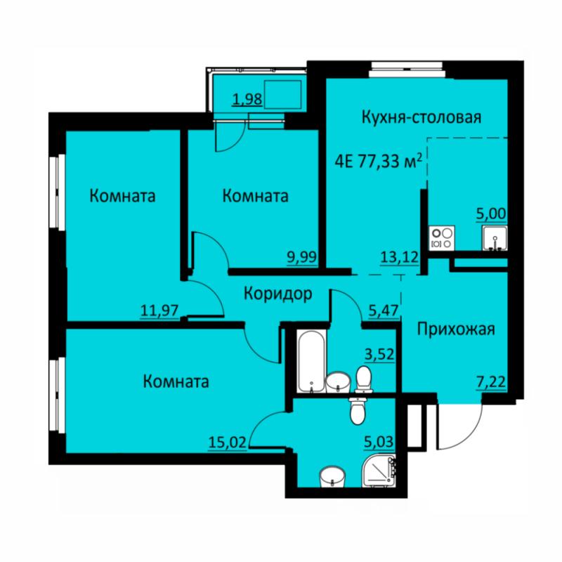 4-комн. евро квартира, 77.36 м², 16/16 этаж