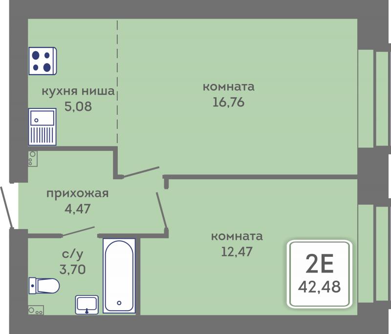 2-комн. квартира, 42.48 м², 6/6 этаж