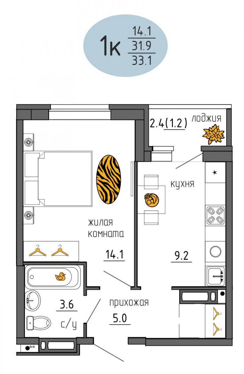 Продается 1- комнатная квартира N 290 в ЖК Утро.