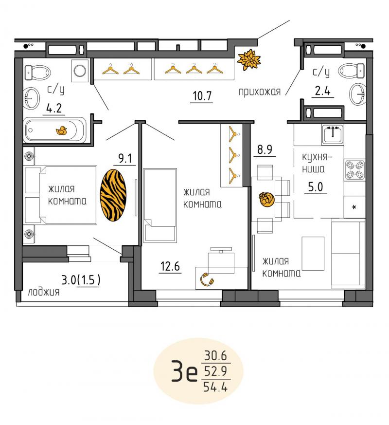 Продается 3- комнатная квартира N 285 в ЖК Утро.