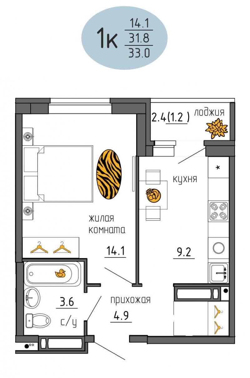 Продается 1- комнатная квартира N 305 в ЖК Утро.