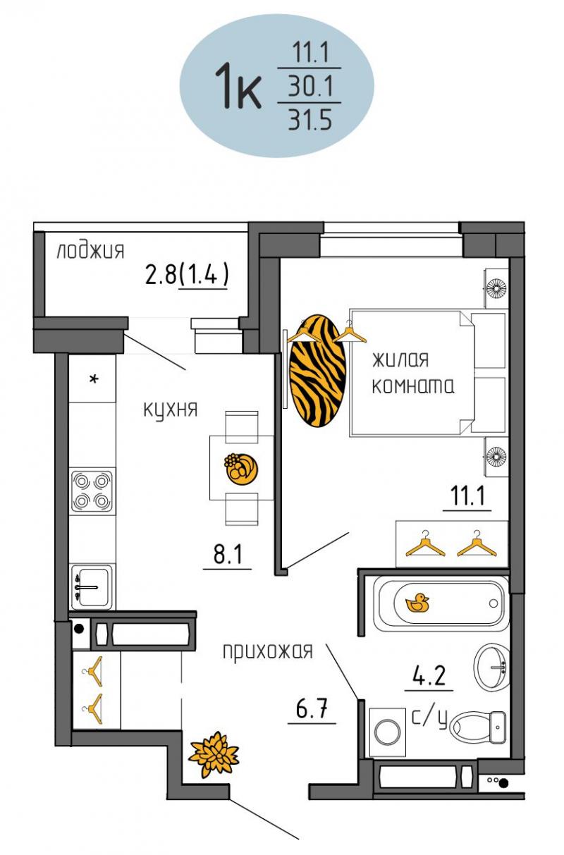 Продается 1- комнатная квартира N 319 в ЖК Утро.