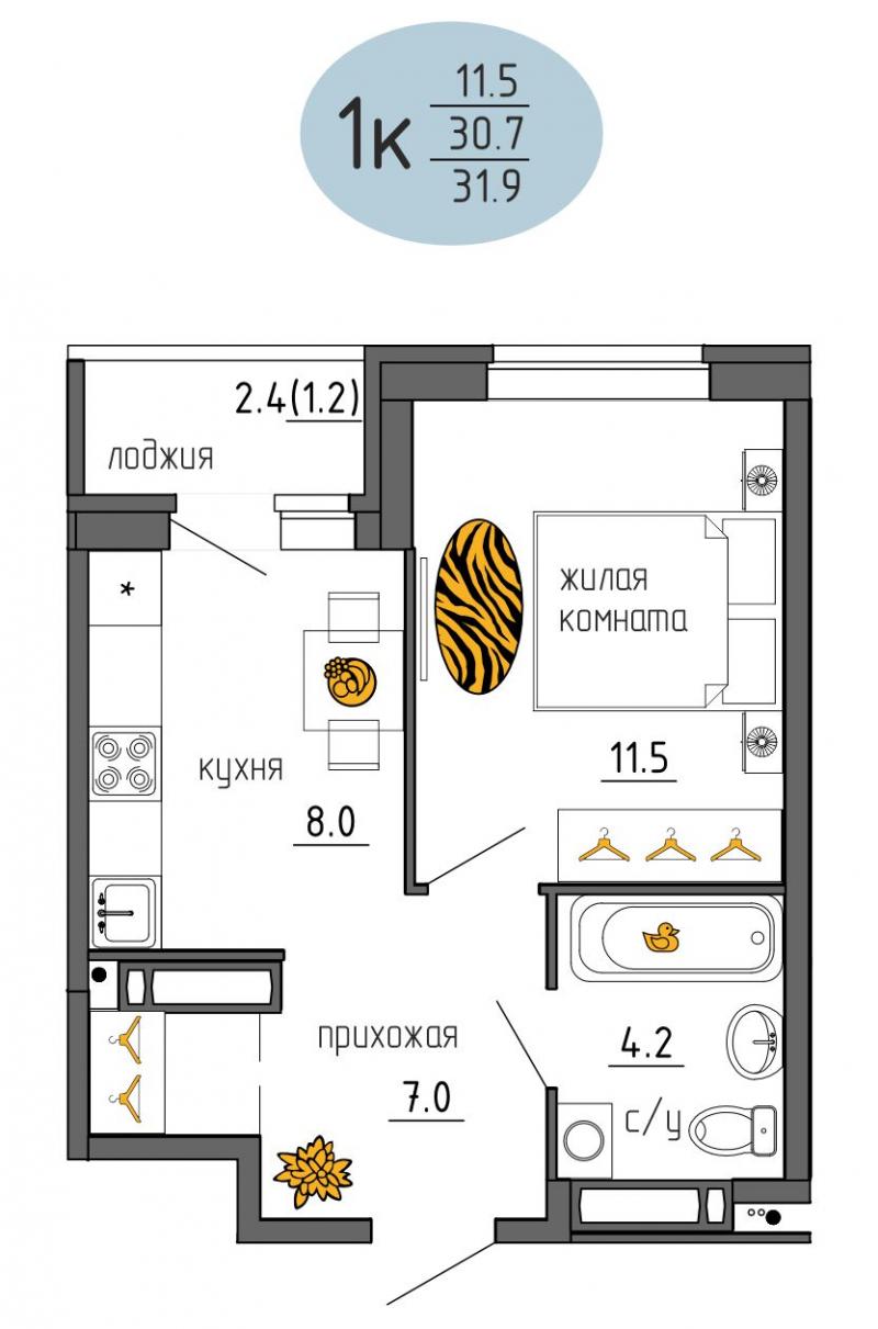 Продается 1- комнатная квартира N 368 в ЖК Утро.