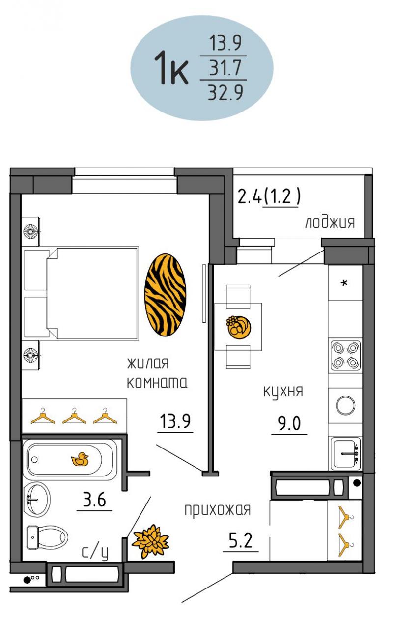 Продается 1- комнатная квартира N 679 в ЖК Утро.