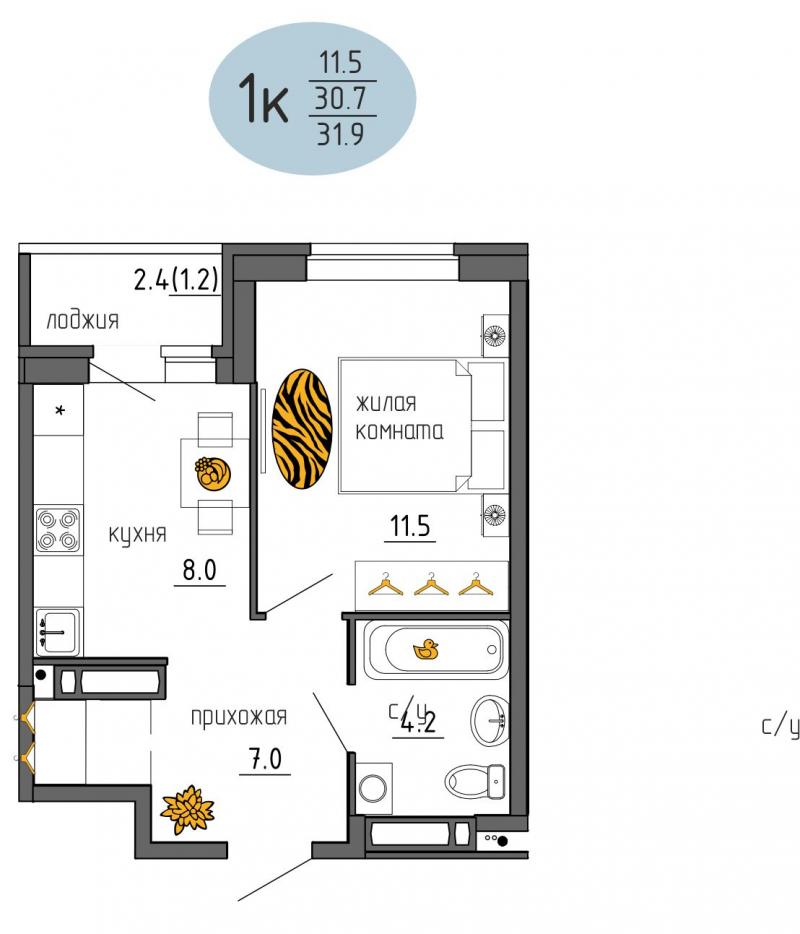 Продается 1- комнатная квартира N 710 в ЖК Утро.