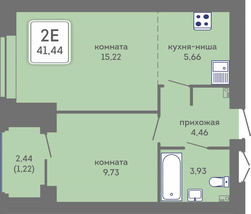 2-комн. квартира, 41.44 м², 3/6 этаж