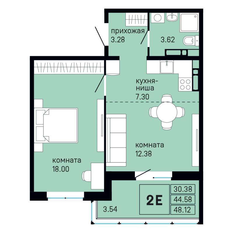 2-комн. квартира, 48.12 м², 16/10 этаж