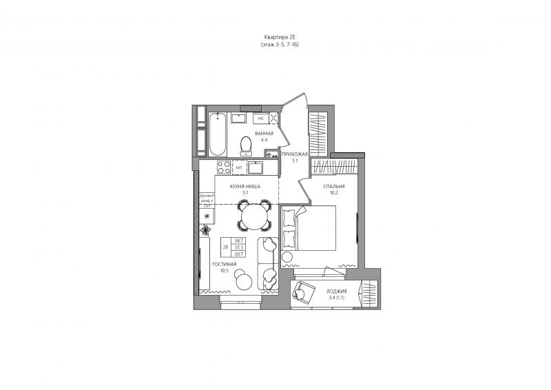 1-комн. кв. 36.30 м² 2/25 эт.