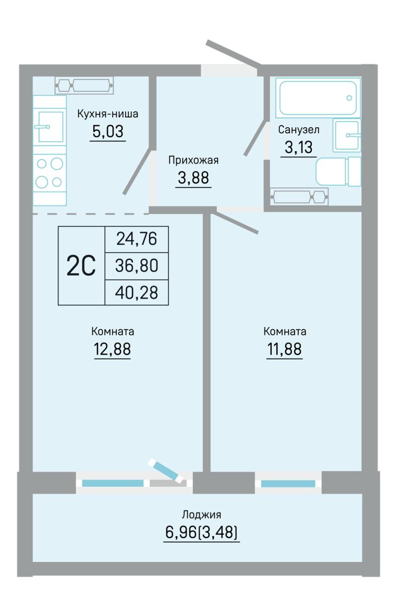 2-комн. квартира, 40.28 м², 3/16 этаж