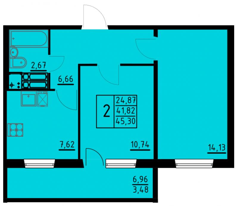 2-комн. квартира, 45.30 м², 3/10 этаж