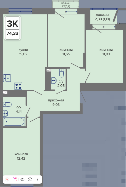 3-комн. кв. 64.24 м² 2/10 эт.