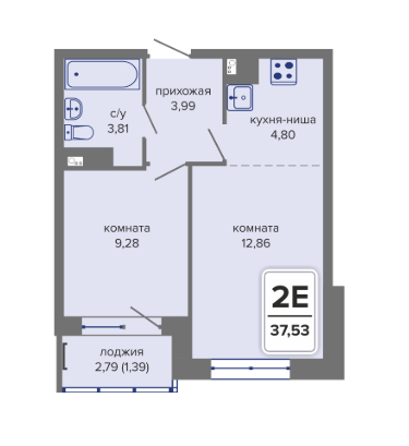 2-комн. евро квартира, 37.53 м², 2/14 этаж