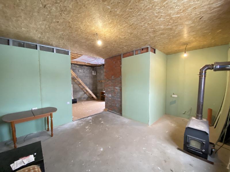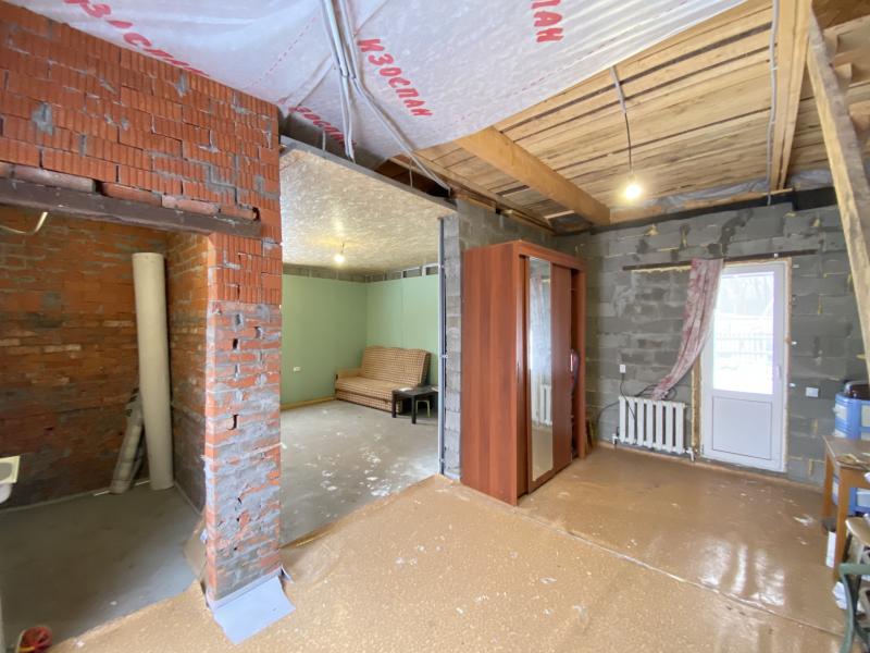 Дом общей площадью 103,1 кв.м. На первом этаже: кухня-гостиная 20 кв.м, просторная прихожая 18,5 кв.м, санузел, котельная и терраса, на втором этаже: свободная планировка 43,7 кв.м. Фундамент: свайно-ростверковый, по всему периметру 1 этажа залита плита под телпый пол. Стены 1 этажа: керамзитоблок 200 мм, с одной стороны утеплитель пеноплекс 100 мм и осб плиты, стены 2 этажа: деревянный каркас с утеплителем 150 мм и осб плитами. Крыша двухскатная: профнастил, утеплитель 150 мм, пароизоляция.